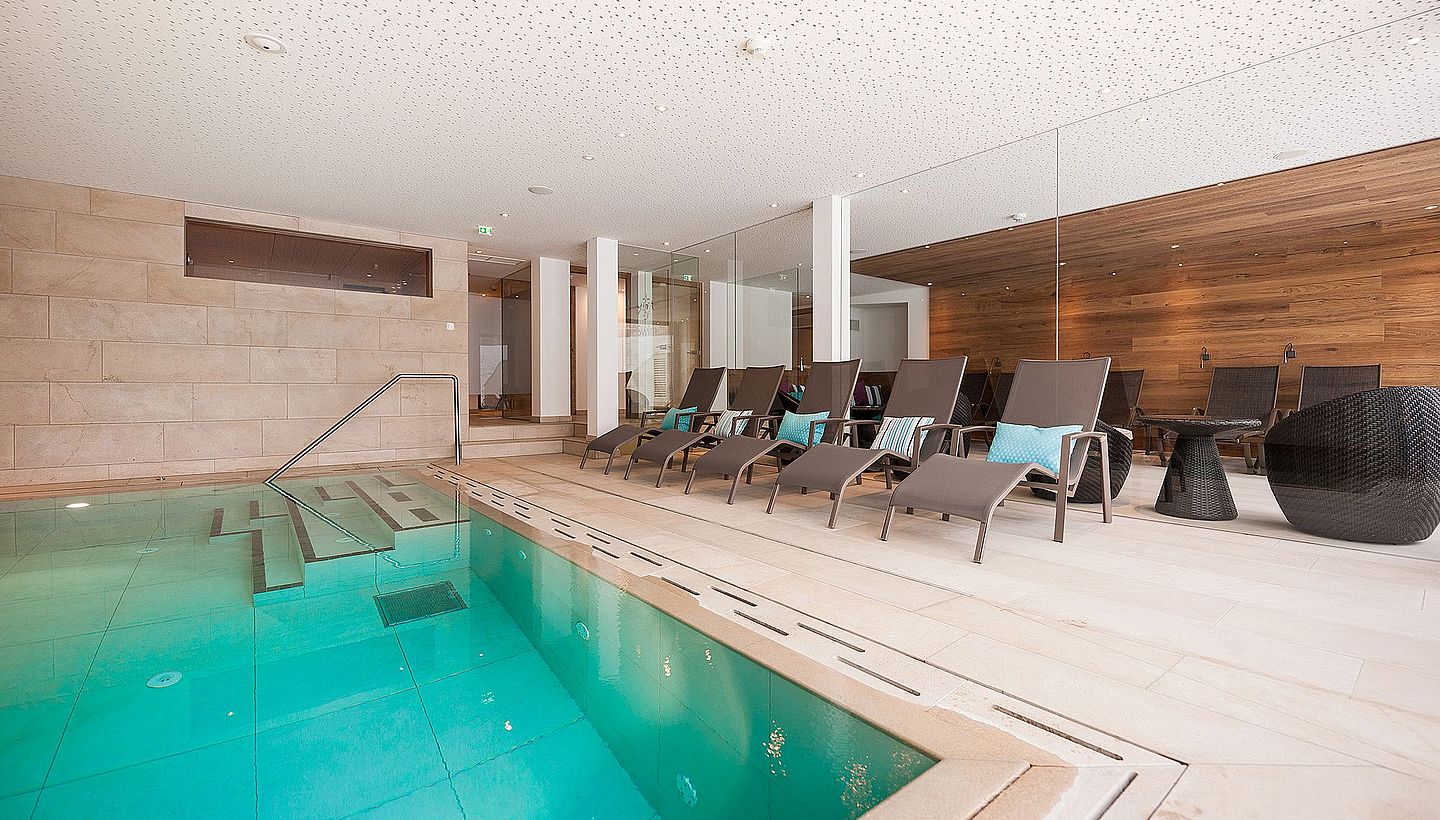 Poolstyle realised the planning and implementation of the indoor pool at Hotel Schranz **** as part of a comprehensive extension and renovation project. The tiled pool was harmoniously integrated into the wellness centre. Light-coloured, friendly tiles and modern, simple architecture create an inviting atmosphere and fit perfectly into the overall concept of the hotel.